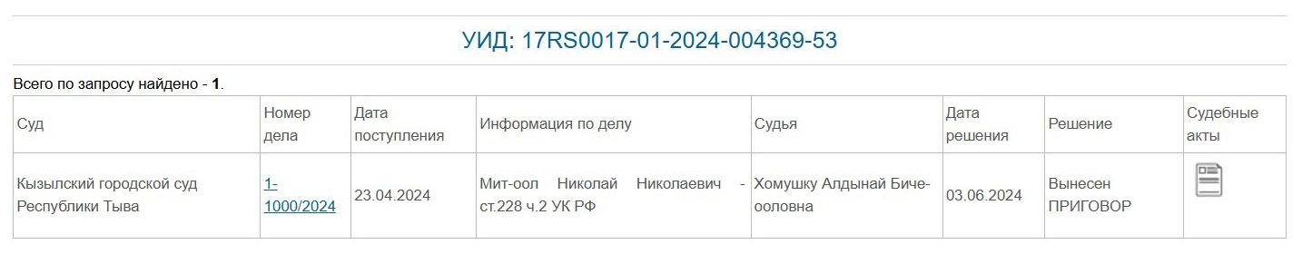 Николай Мит-Оол был приговорен Кызылским горсудом за незаконный оборот наркотиков к трем годам лишения свободы в июне 2024 года, подписал контракт в октябре того же года.