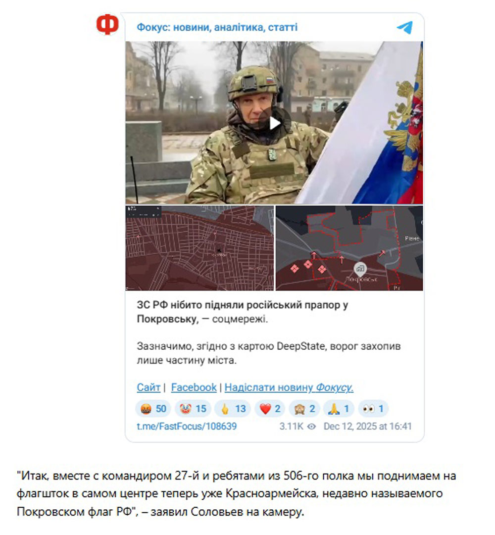 Сообщения января 2026 года — 27-я дивизия «расширяет зону контроля» севернее Покровска.