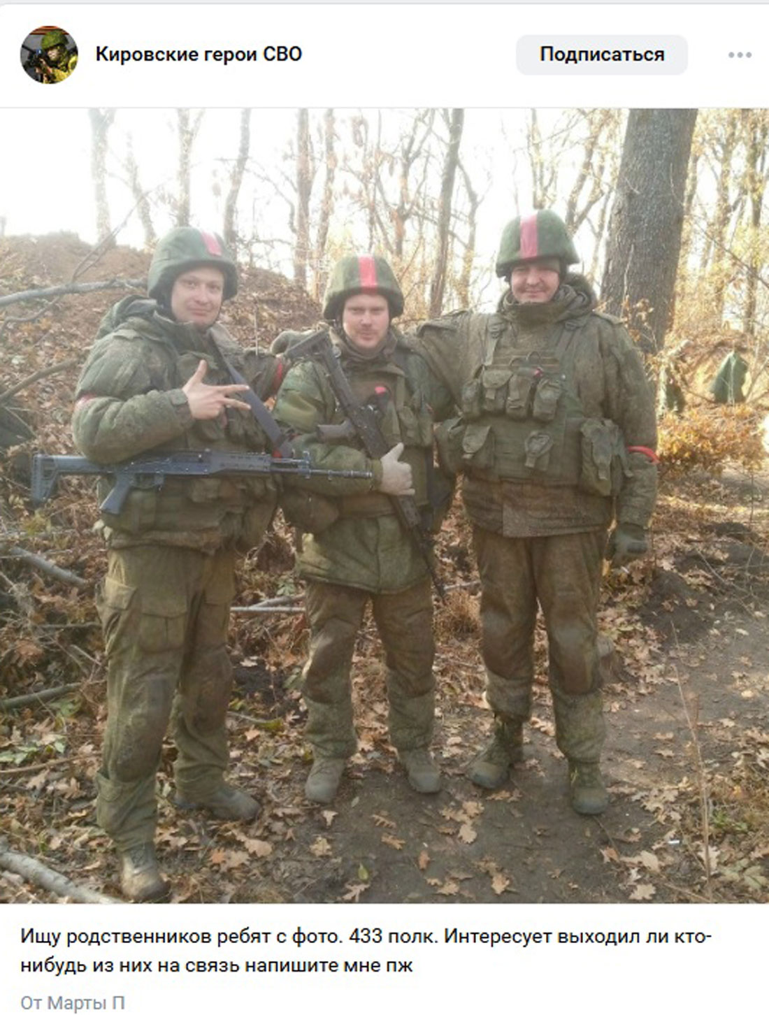 Всего за 2024 год в списки 433-го полка было внесено 6857 человек. Значит, около пяти тысяч человек по каким-то причинам из полка убыло. Судя по 1816 «безвестно отсутствующих», погибнуть мог каждый четвертый, зачисленный в часть. Получается, что около 3-3,5 тысячи военнослужащих полка получили ранения, несовместимые с дальнейшей службой даже по сниженным армейским стандартам периода «СВО».